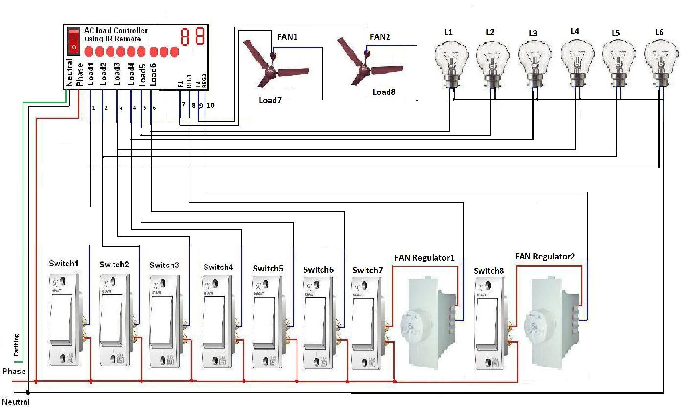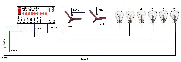 1. This Light and Fan controller has eight channels. Out of these, the 7th and 8th channels are reserved for fan. Rest six channels may be used to connect 100 watt bulb, CFL lamp, LED light, night lamp, tube light, music system, mobile charger, power bank, TV, CD/DVD player, computer, laptop etc.